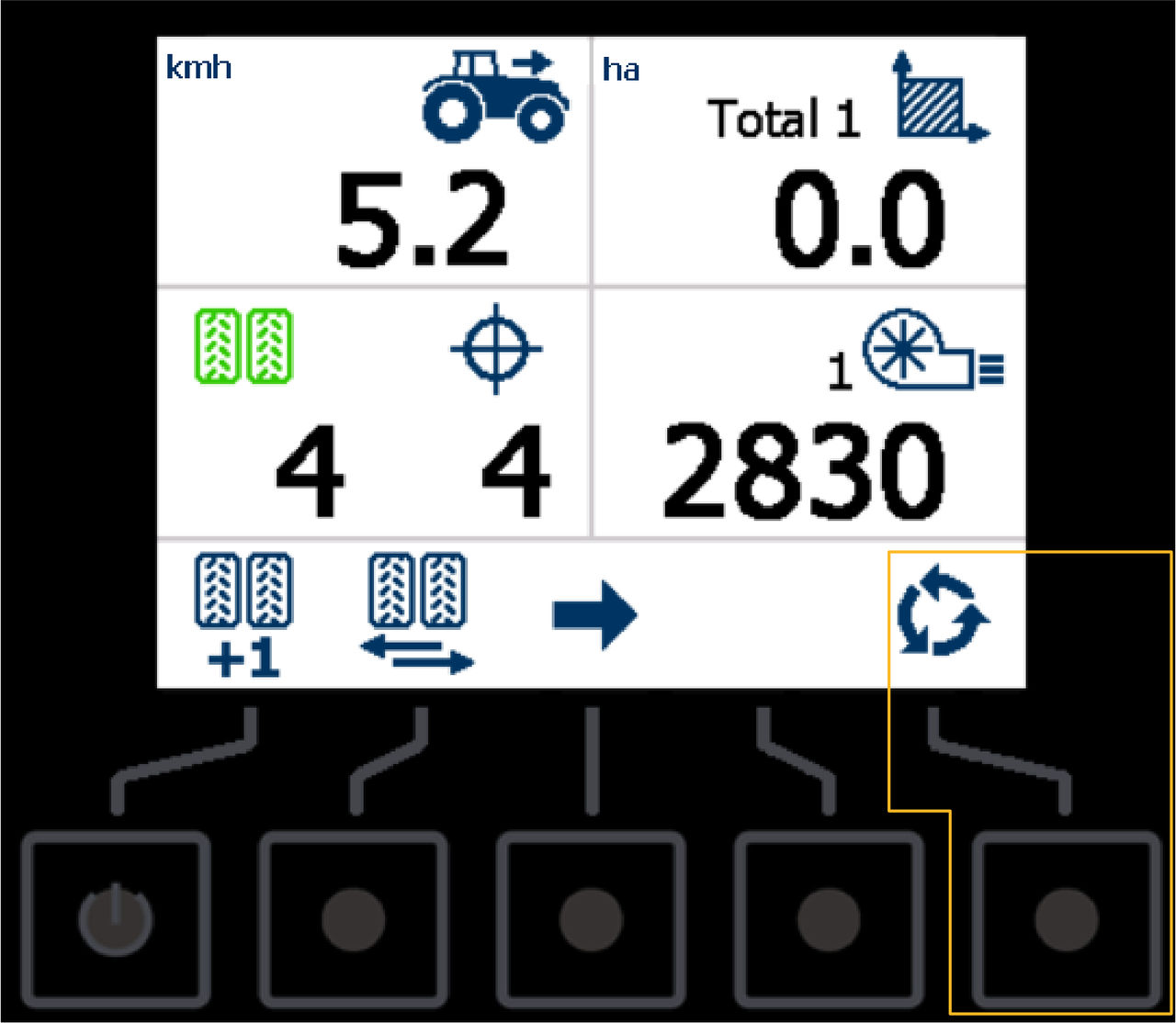 The capacitive touch buttons control screen functions. Each button has an on-screen icon, shown by the highlighted button.