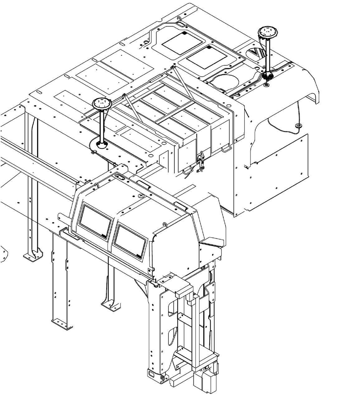 CAT 395 model excavators include predrilled holes for use with the antenna mast mounts.