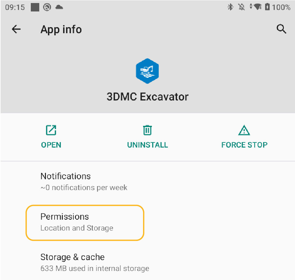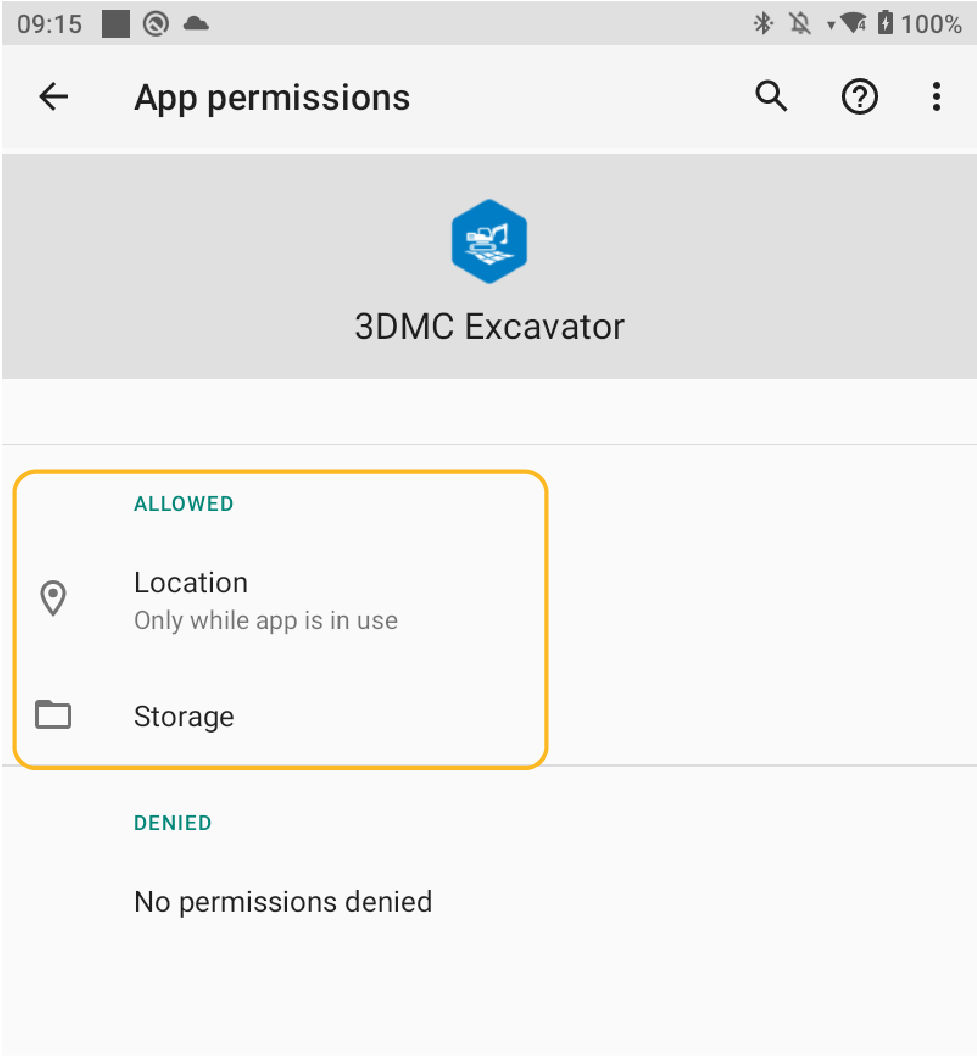 After the 3D-MC APK installation file is installed on the CT8X2 Android device, make sure location and storage access has been permitted.