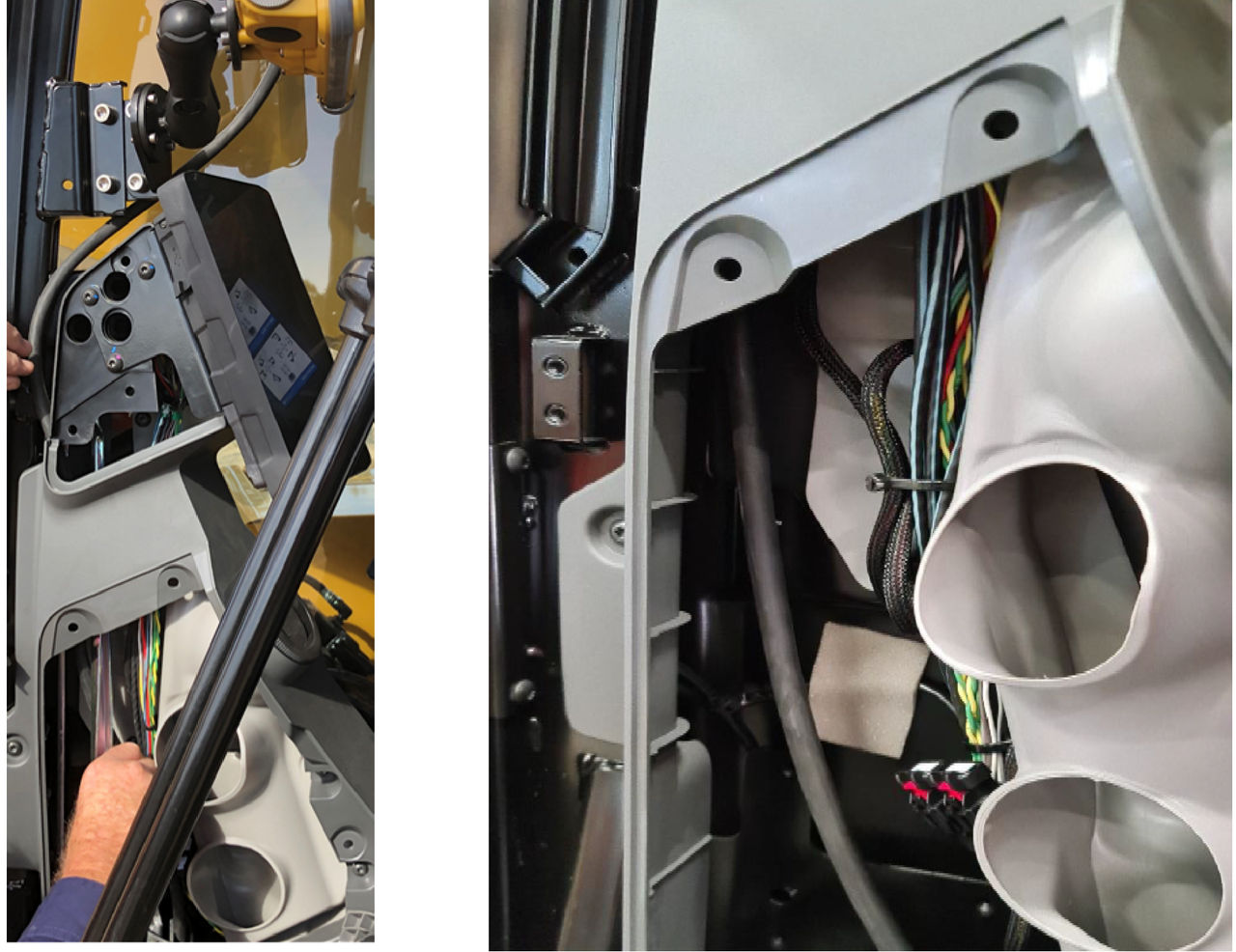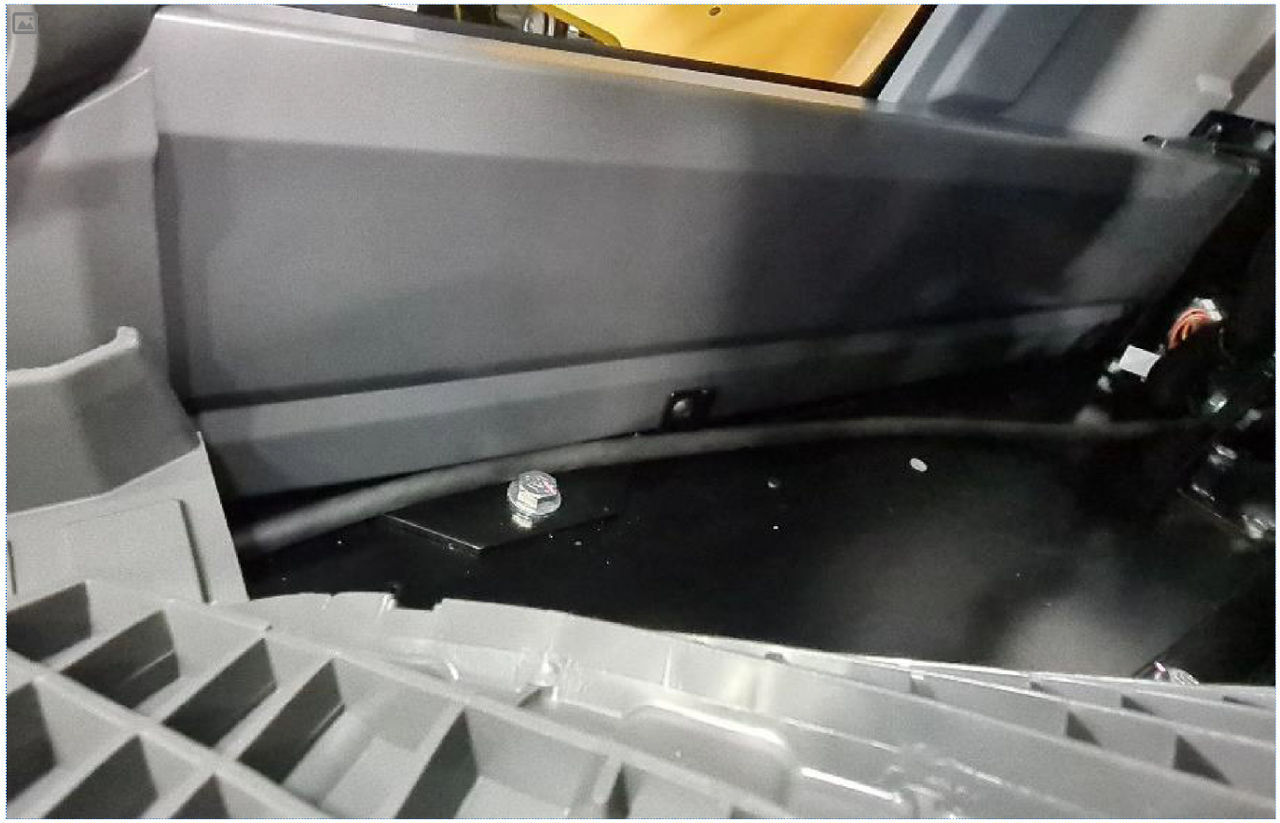 - From the bottom of the console, route the cable under the floor mat along the inside right edge of the cab.ADDITIONAL INFORMATION: