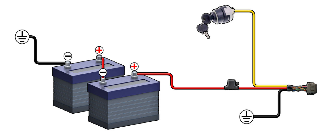 | Ground | Connected electrically to the machine’s metal frame or chassis. It operates as the electrical return path. Do not connect directly to the battery negative terminal. |