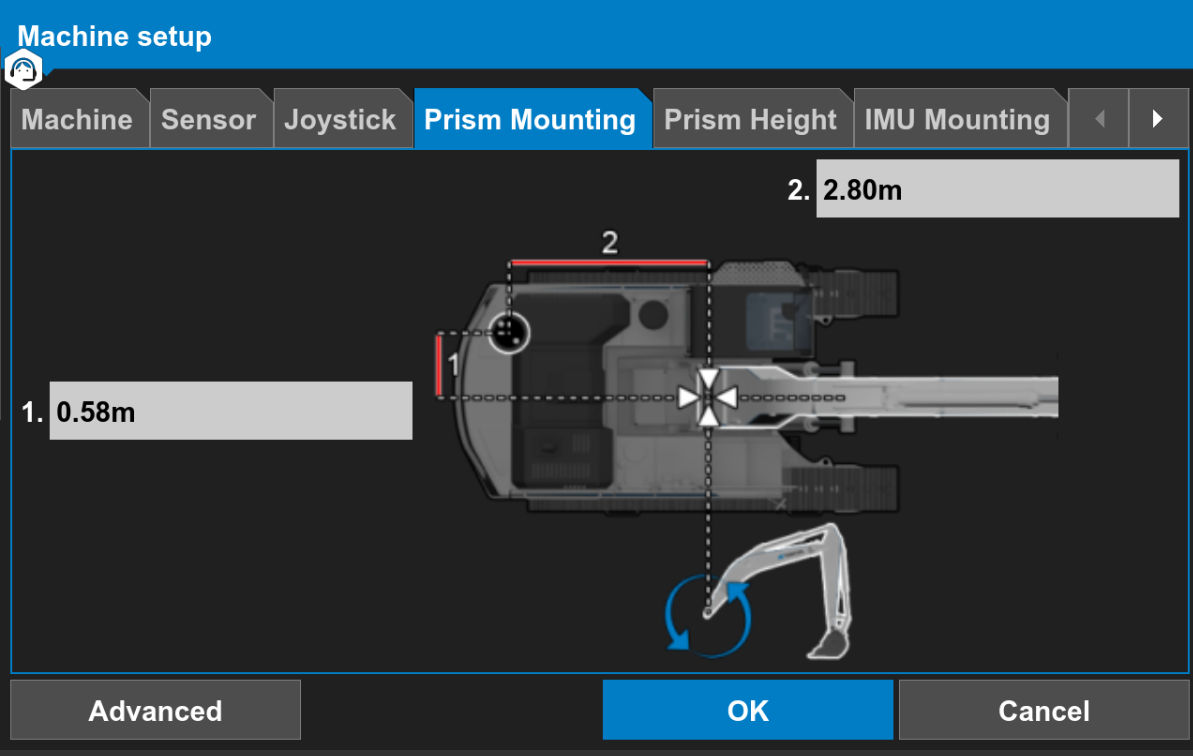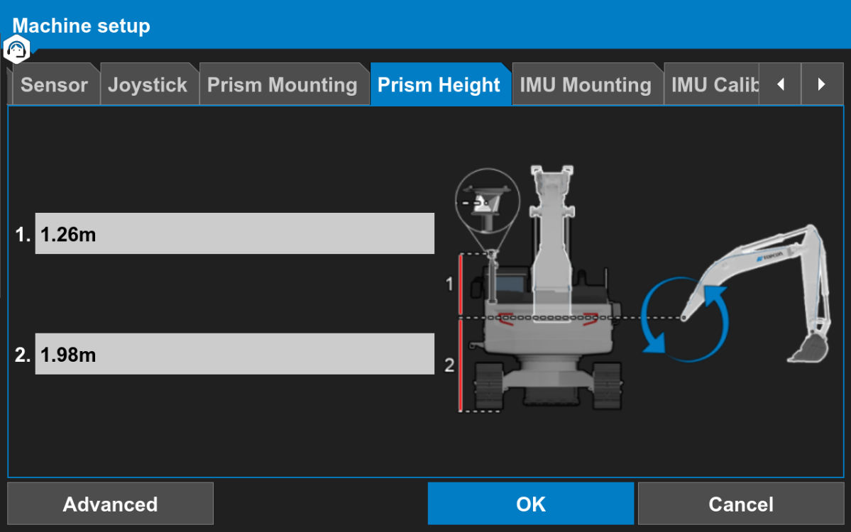 - Measure and enter the excavator prism height offsets for LPS configuration only.ADDITIONAL INFORMATION: