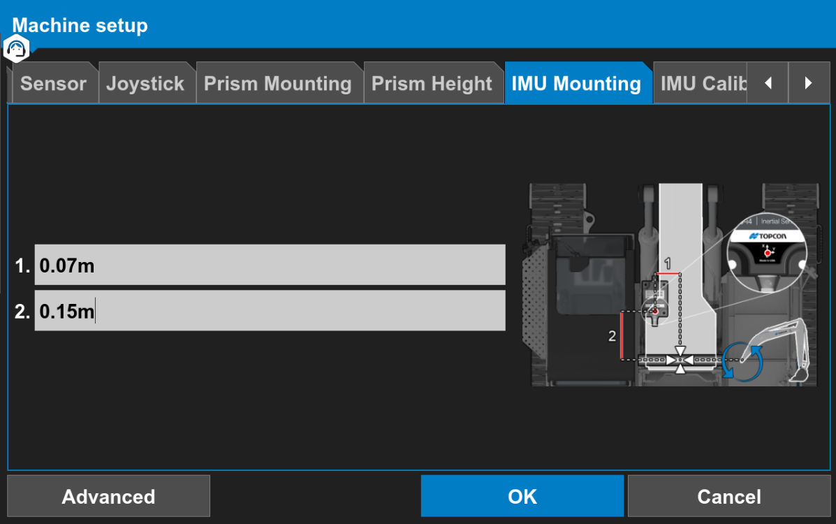 - Measure and enter the body IMU mount offsets on the Machine Setup screen for LPS configuration only.ADDITIONAL INFORMATION: