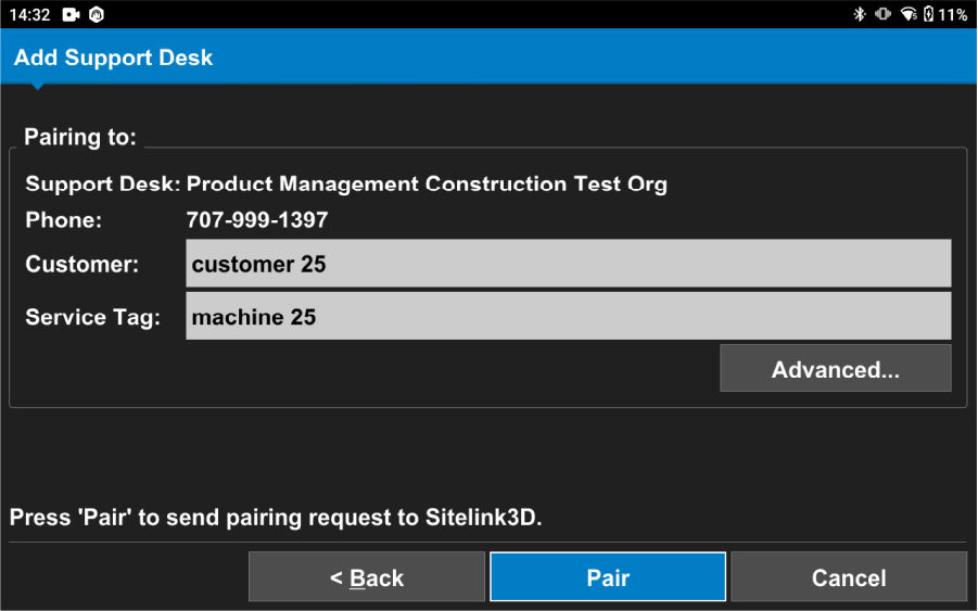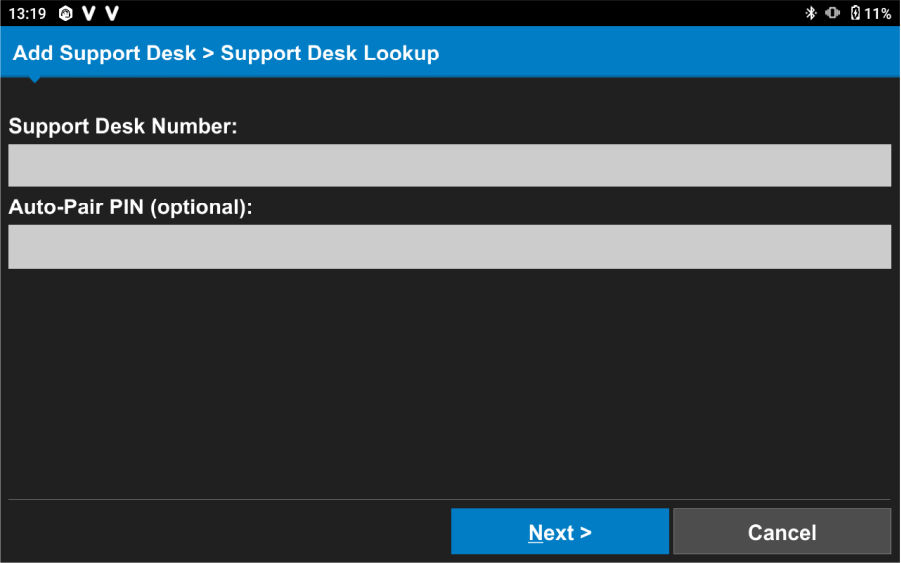 - Enter the Support Desk Number and if needed, the Auto-Pair PIN.
