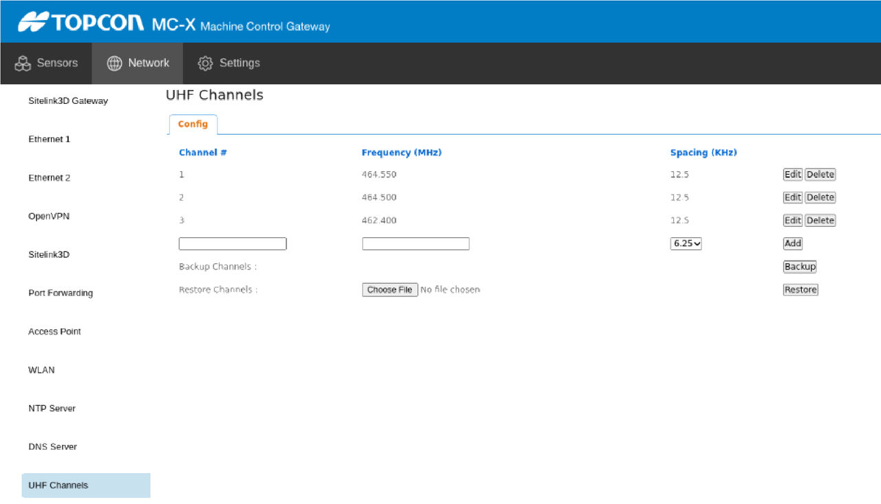 Note: Installation of 3D-MC v15 software will overwrite the radio settings for UHF Radio, FH-915 Radio, and the Direct Network Connection. Users must set up any UHF channel changes made in the MC-X Machine Control Gateway.