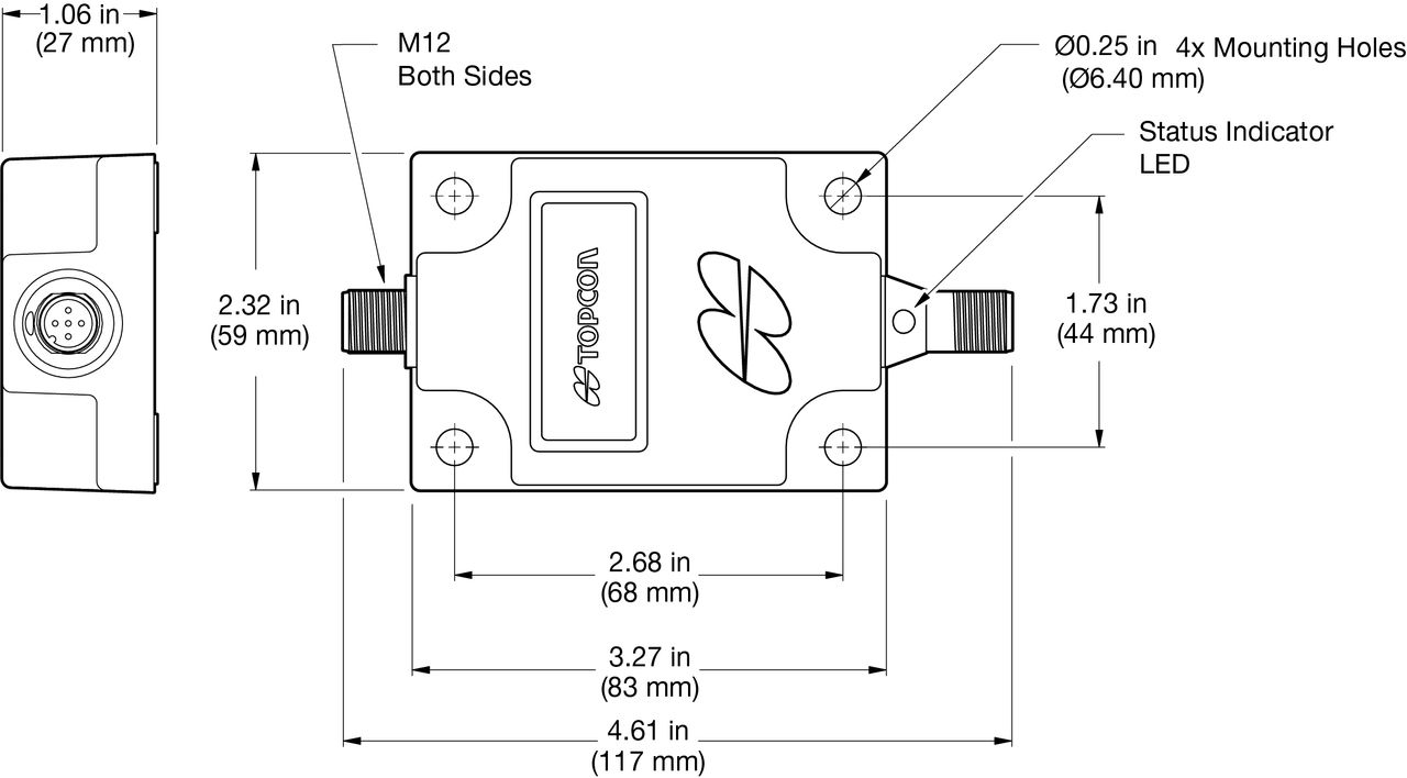 4.61 in x 1.73 in x 1.06 in (117 mm x 44 mm x 27 mm)