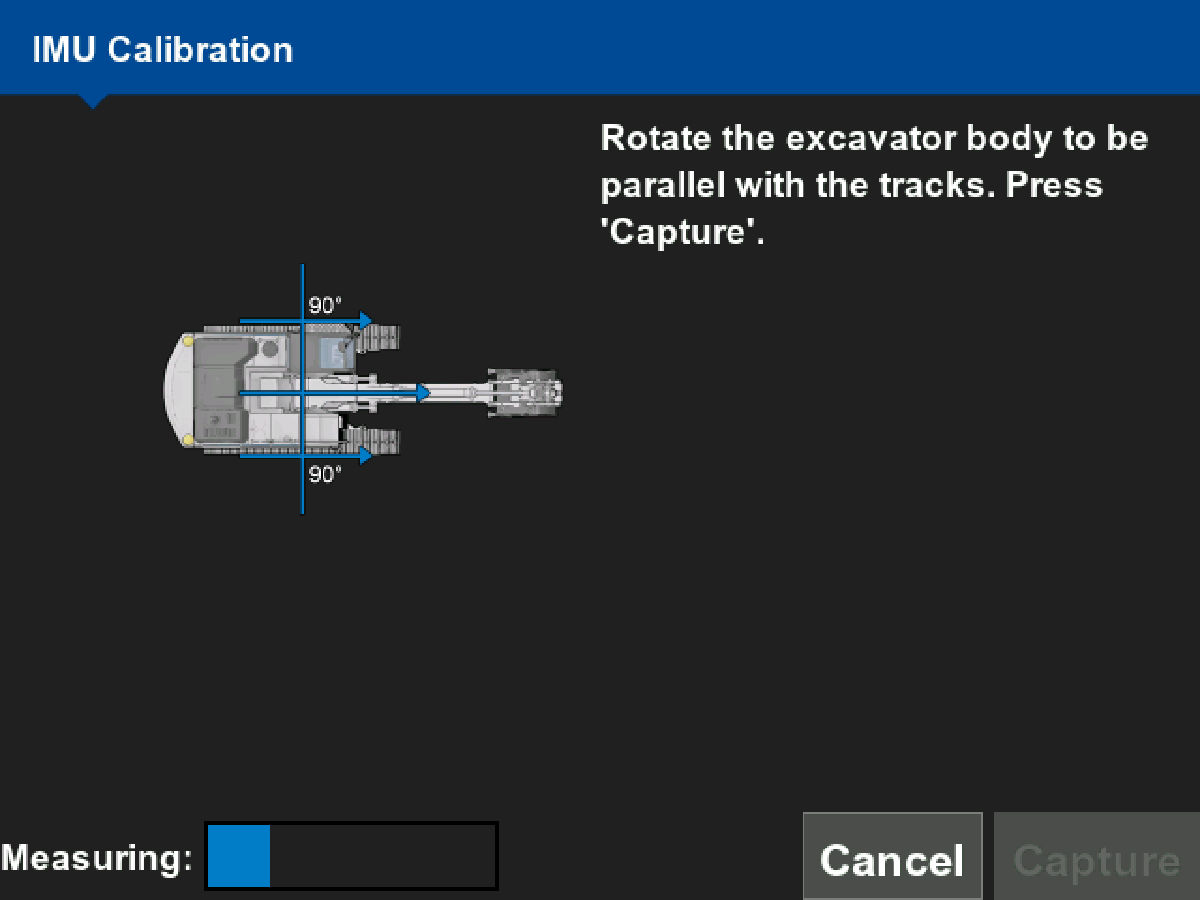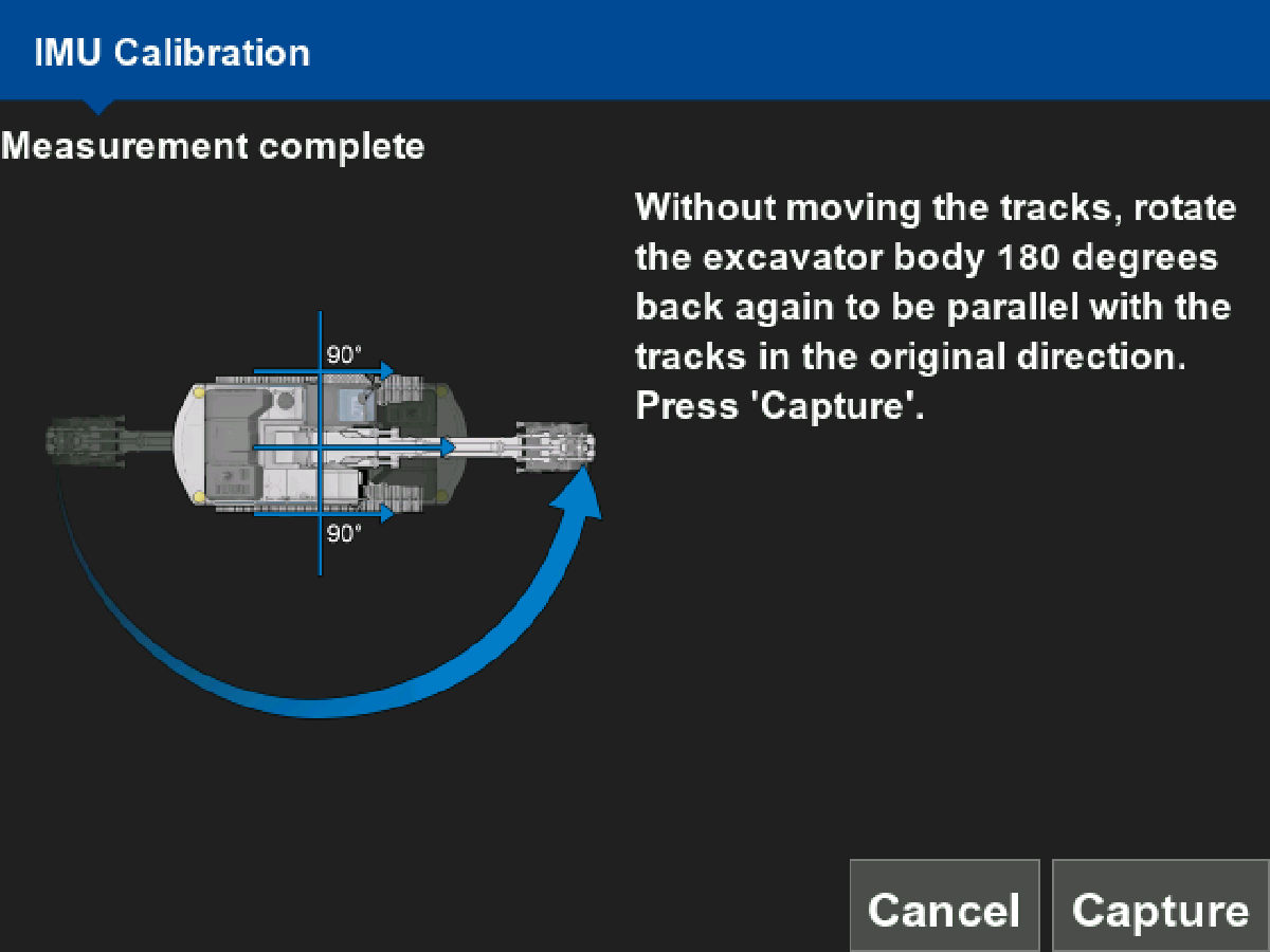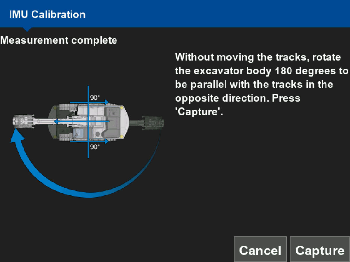- Select Capture.ADDITIONAL INFORMATION: The IMU Calibration screen shows position 2.